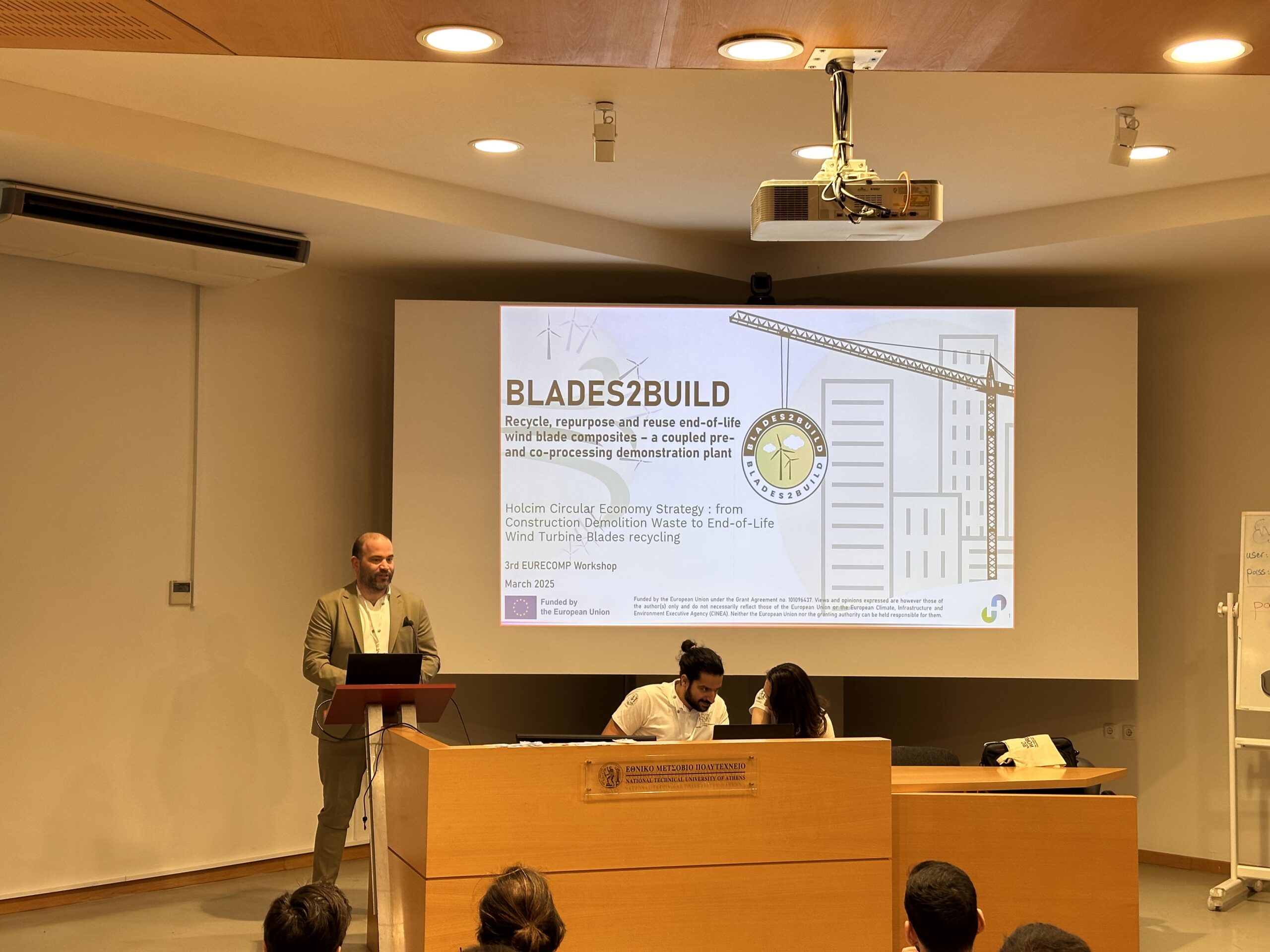 BLADES2BUILD attended the 3rd EuReComp workshop about “Circularity in Composites: Shaping a Sustainable Future” organised by our partner R-NanoLab/National Technical University of Athens! The event took place in Athens, on today 19th of March.